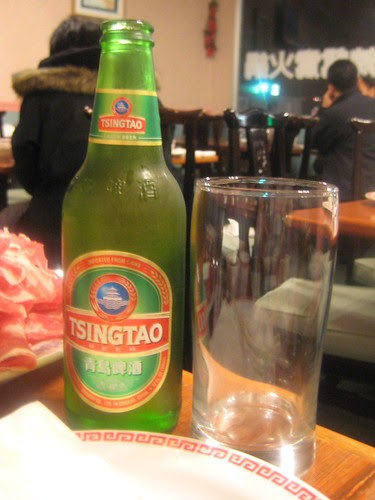 吃熱呼呼的火鍋配上清涼的啤酒是很棒的享受呢!公園先生點了瓶他沒喝過的青島啤酒,我是因為還以為星期五要開刀,所以不能喝酒,一口都沒喝,我好像也沒喝過青島啤酒。
