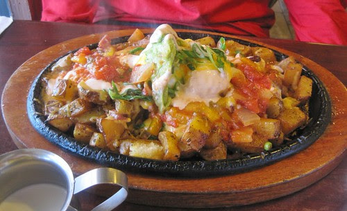 Dr. P ordered Skillet. Lots of country fried potatoes with onion and bacon, cheese, poached egg, topped with guacamole and sour cream and sprinkled with some scallion. This was more of a "traditional" breakfast dish, and it tasted very gourmet. The flavor was stronger than the mac and cheese. I had my mac and cheese then tried this dish, and thought it was delicious. Dr. P tried my mac and cheese after eating the skillet, and thought he couldn't taste anything. In my opinion, both dishes were good. But Dr. P only liked the skillet.